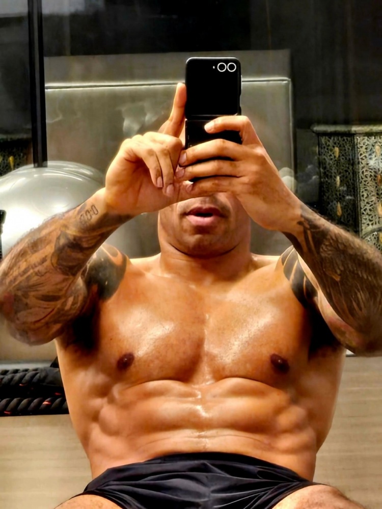 在与训练伙伴完成长达一小时的高强度运动后,亨利在社媒发布了两张展示肌肉线条的自拍照,并配文写道:“刻苦训练,健康饮食,戒绝糖分。”