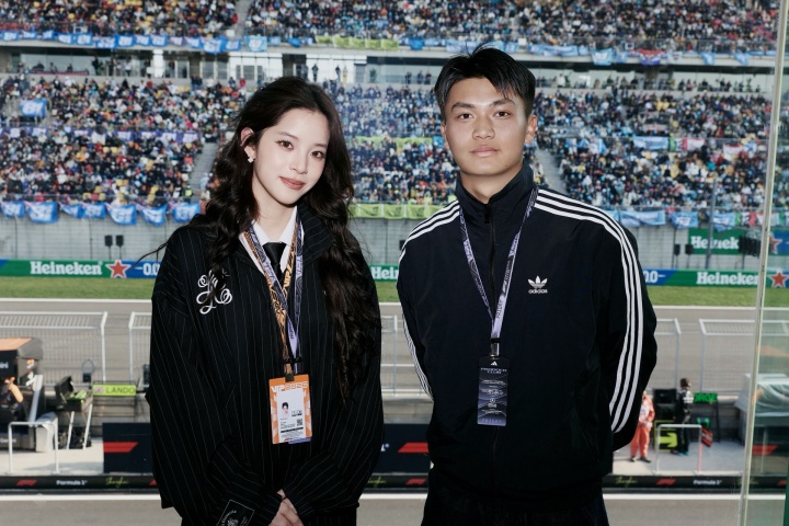 OD体育官方-蒯纪闻现场观战F1,与欧阳娜娜合照
